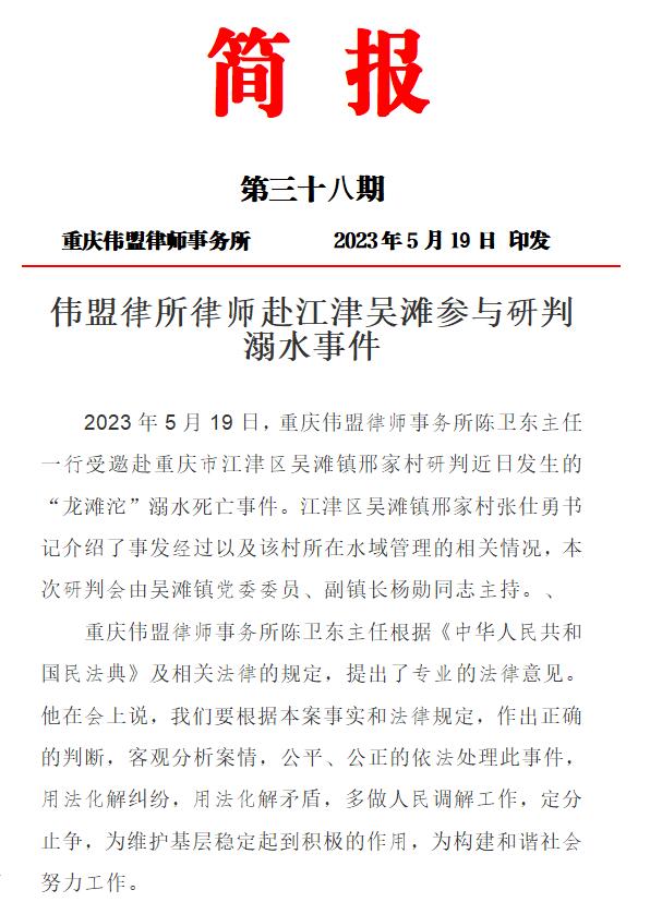 伟盟律所律师赴江津吴滩参与研判溺水事件