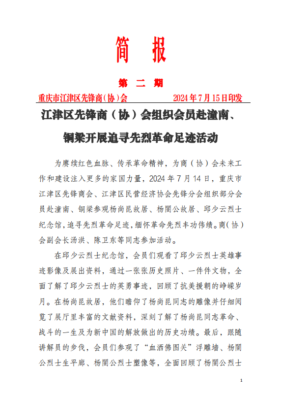 先锋商会2024《第二期》简报:先锋商会组织会员赴潼南、铜梁开展追寻先烈革命足迹活动