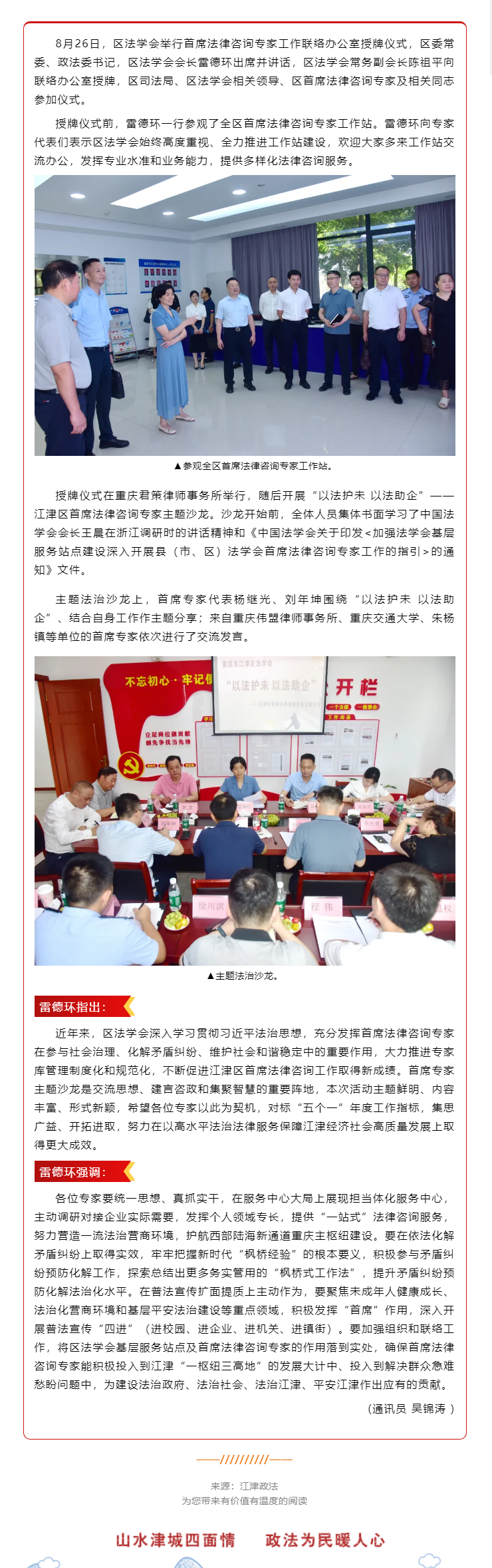 区法学会举行首席法律咨询专家工作联络办公室授牌仪式